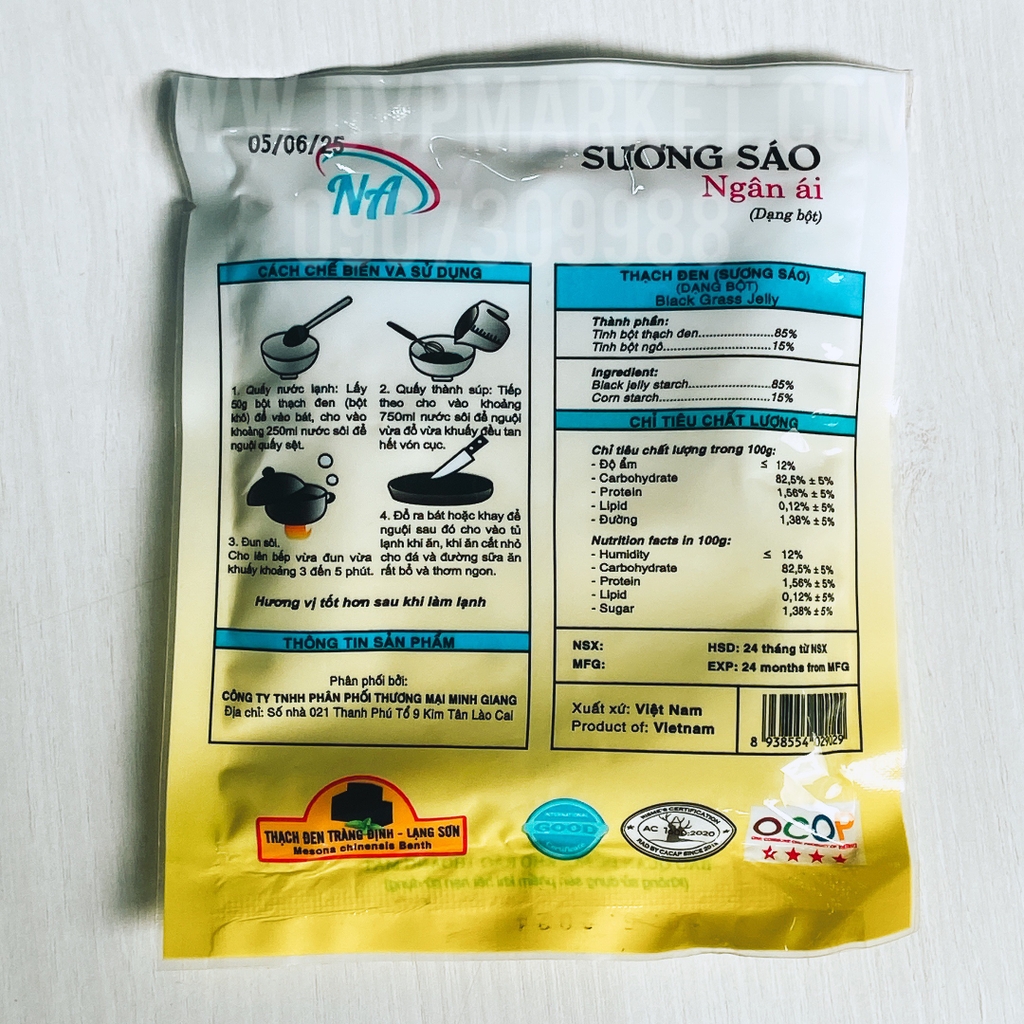 Nguyên liệu tự nhiên: Sản phẩm được làm từ lá sương sáo và tinh bột bắp chọn lọc, không chứa chất bảo quản, an toàn cho sức khỏe.
