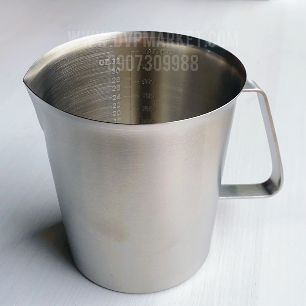 Ca Inox SUS304. Có vạch chia thể tích từ 500ml đến 2.0 lít Chất liệu inox 304 không gỉ sét, sạch sẽ, dễ vệ sinh, không sắc bén ngay quai cầm và miệng ca. Và quan trọng nhất là rất là bền .