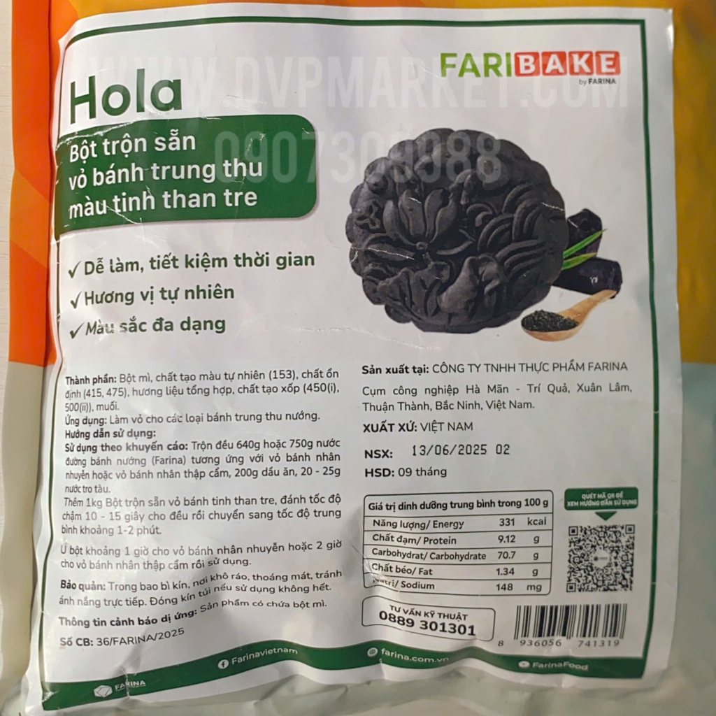 Hola - Bột trộn sẵn vỏ bánh trung thu màu tinh than tre 1kg