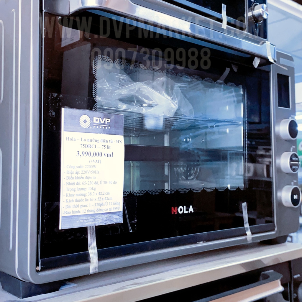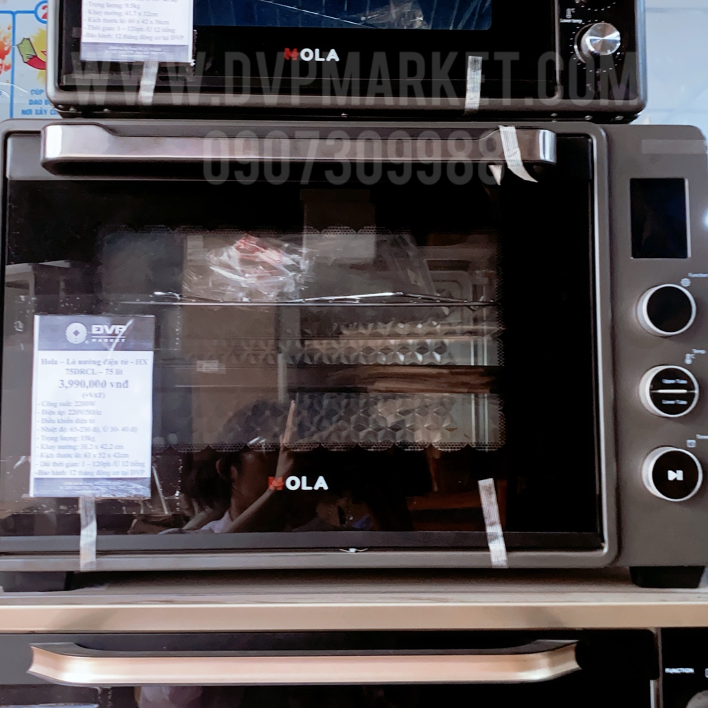 Lò nướng điện tử Hola HX-75DRCL là dòng lò nướng gia đình dung tích 75 lít, thiết kế hiện đại, phù hợp cho gia đình đông người hoặc các tiệm bánh nhỏ. Với công suất 2200W và dải nhiệt độ từ 60°C đến 230°C, lò cho phép nướng hiệu quả và tiết kiệm thời gian.