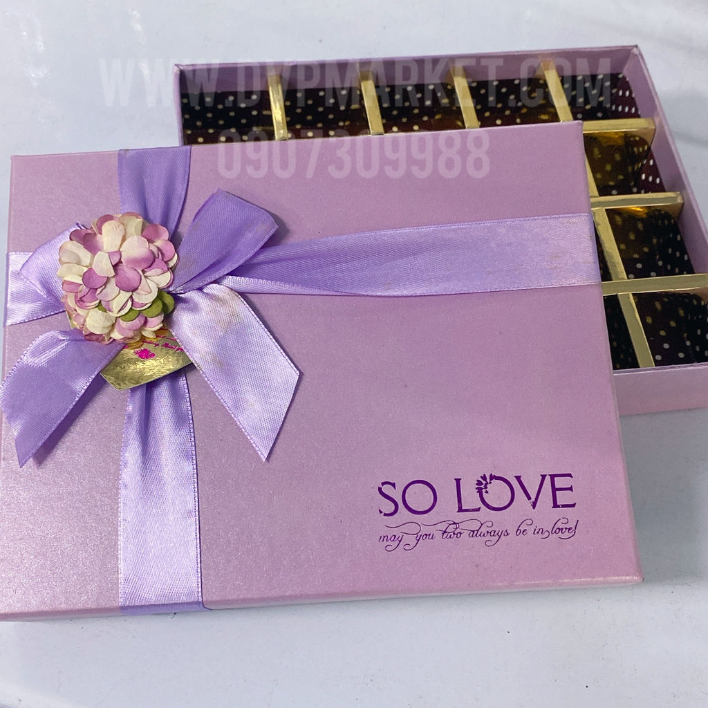 Hộp SCL chữ nhật 18 ngăn mặt kính màu tím nơ tím