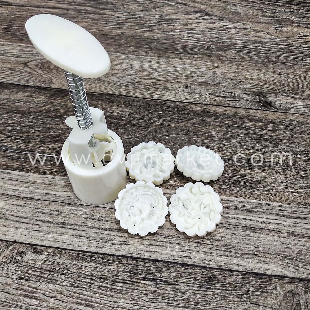 Gọi là khuôn lò xo vì nó có phần lò xo đẩy giúp lấy bánh ra dễ dàng hơn. Bạn chỉ cần cho bột vào khuôn rồi lấy tay ép lò xo xuống là ta đã được những chiếc bánh trung thu cực kì xinh xắn và đẹp mắt. Chính phần lò xo này giúp bánh vừa vặn mà lại khiến cho người làm không tốn nhiều công sức. Khuôn lò xo được làm từ nhựa cứng, thường đi kèm rất nhiều mặt cho hình dáng bánh thêm phong phú. Những mặt hoa văn rời này cũng chính là điểm đặc biệt của khuôn lò xo. Khi bạn muốn đổi hoa văn, chỉ việc thay mặt là ta đã có những chiếc bánh họa tiết khác nhau.