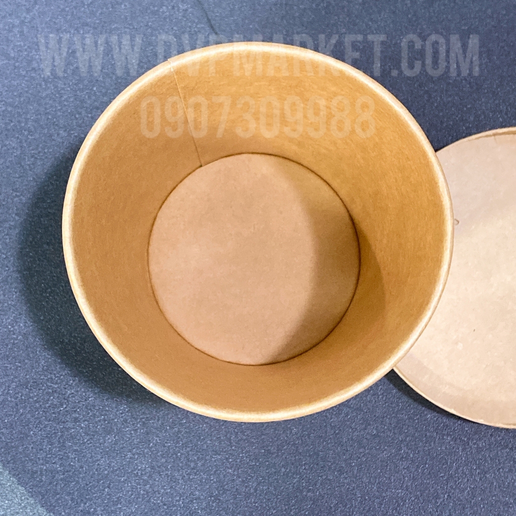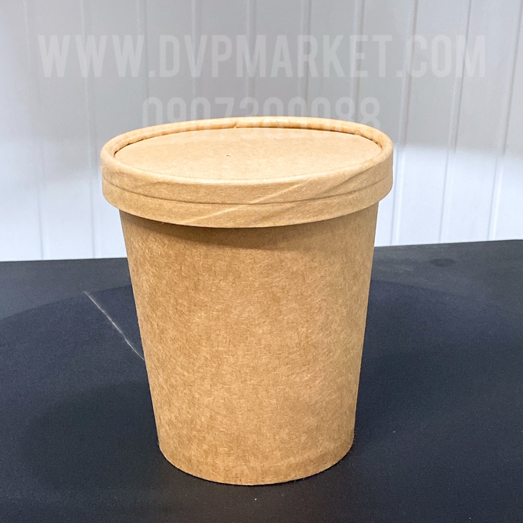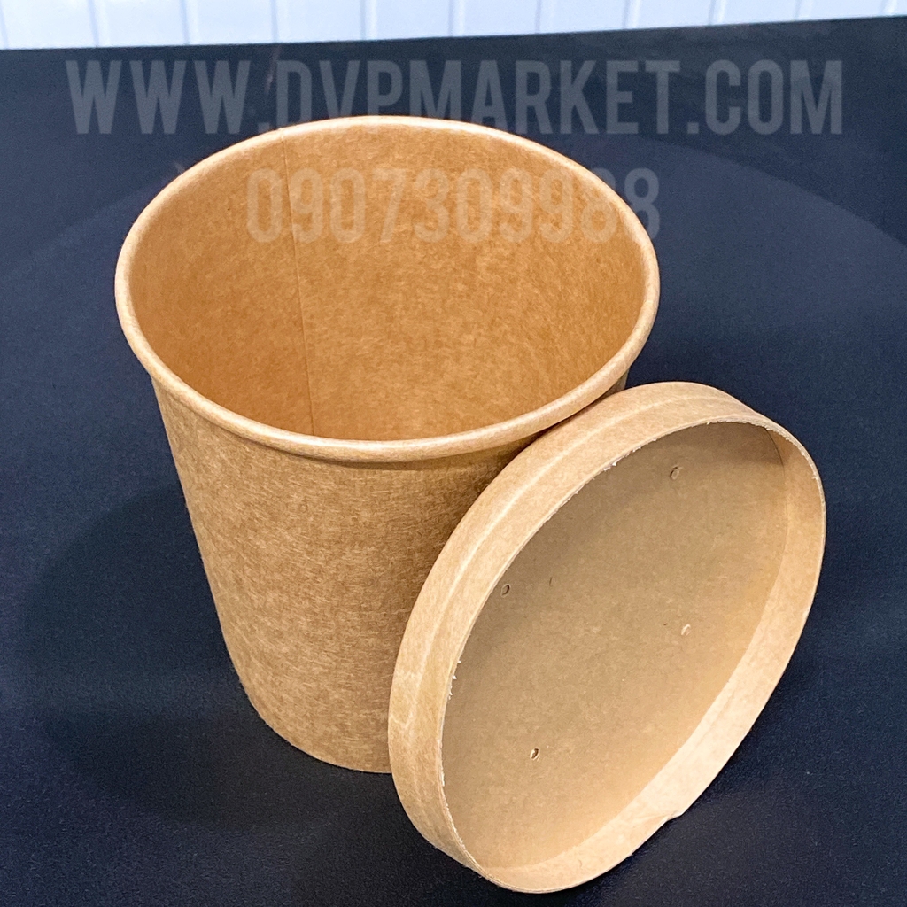 Thiết kế: Màu kraft tự nhiên, dáng tròn chắc tay, phù hợp nắp nhựa hoặc nắp giấy.