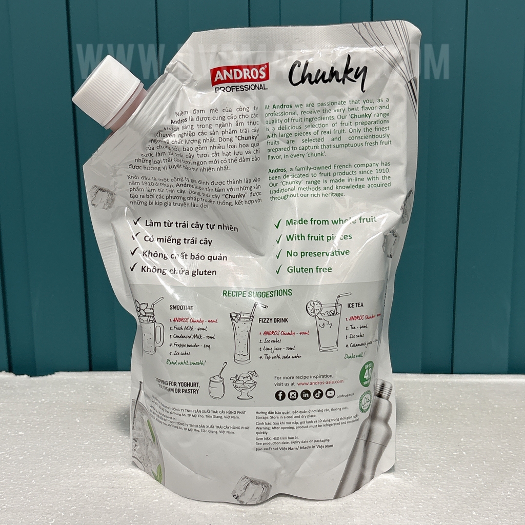 Sự sáng tạo thú vị từ những miếng trái cây tươi ngon, bổ sung hương vị phong phú cũng như tạo nên vẻ đẹp tinh tế cho những món ăn, thức uống và làm thỏa mãn mọi giác quan của bạn. Là nguyên liệu lý tưởng để các chuyên gia pha chế và các quán café có thể thỏa sức sáng tạo ra những thức uống mới, CHUNKY là topping hoàn hảo với hương vị trái cây tự nhiên