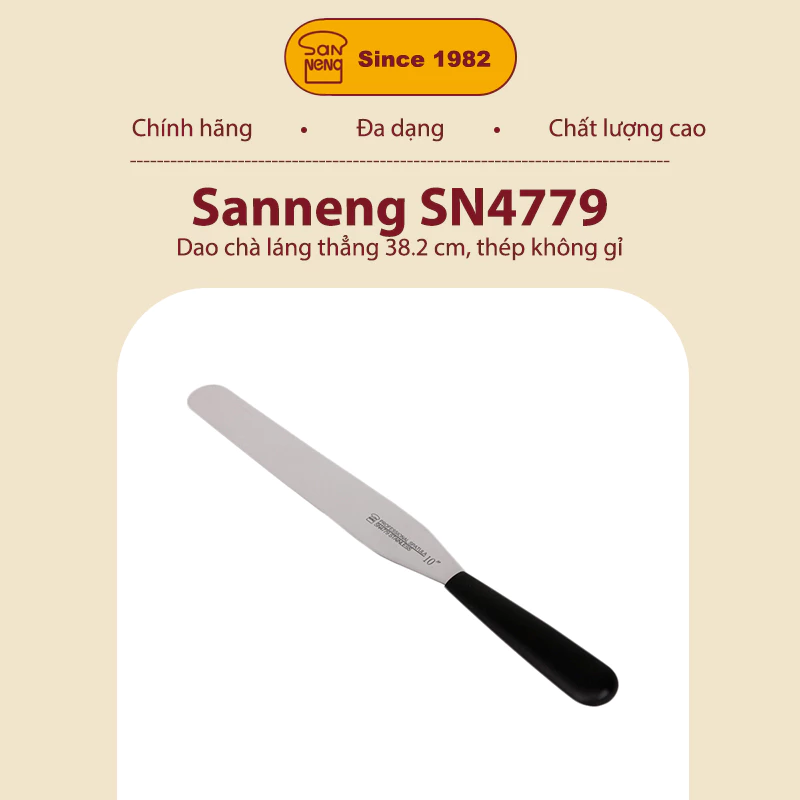 Dao chà láng thẳng nhỡ Sanneng SN4779 được thiết kế với lưỡi inox mảnh, thẳng và chiều dài vừa tầm, giúp làm phẳng kem, ganache hay fondant trên mặt và thành bánh một cách nhanh chóng. Đây là lựa chọn lý tưởng cho các loại bánh cỡ trung, vừa dễ điều khiển vừa mang lại bề mặt mịn đẹp như ý.