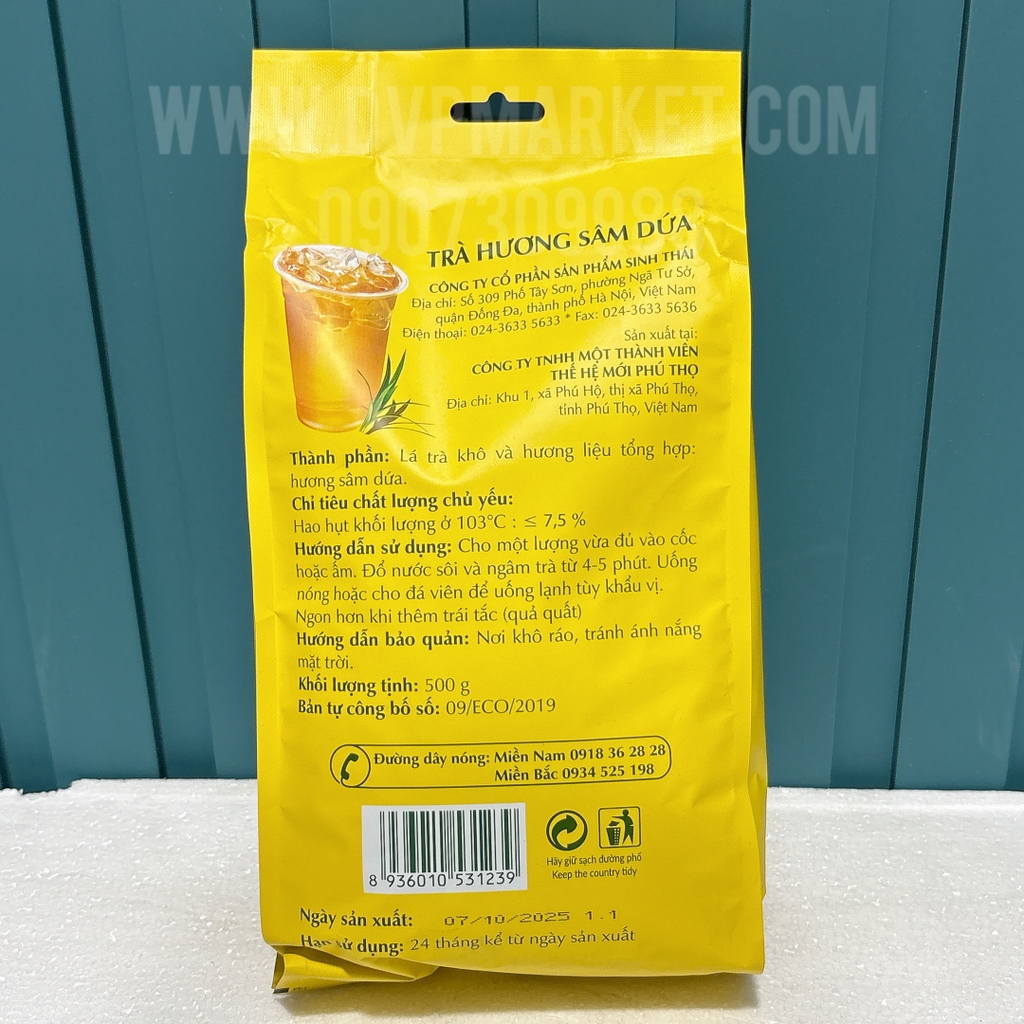 -Sâm dứa Tam Mã làm từ trà xanh kết hợp với hương sâm dứa tự nhiên, nước trà màu xanh trong, có mùi thơm nhẹ của trà và sâm dứa