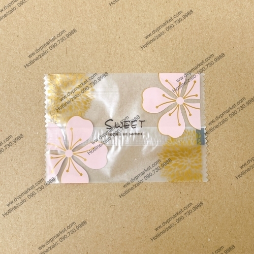Túi hàn bánh quy - kẹo 7x10cm hoa đào (Xấp 100)