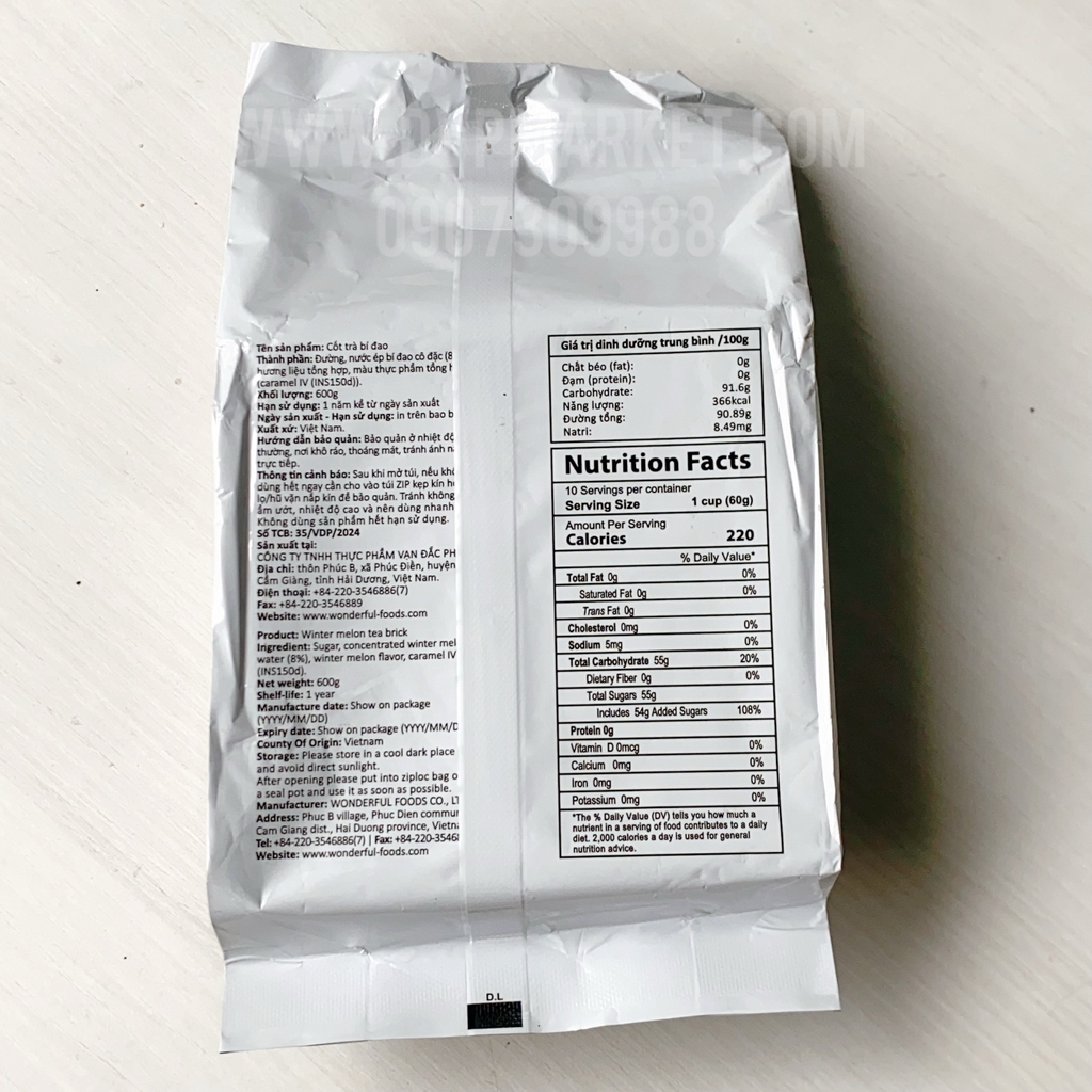 Thành phần: Chiết xuất bí đao tươi, đường, nước, chất điều chỉnh độ acid,...